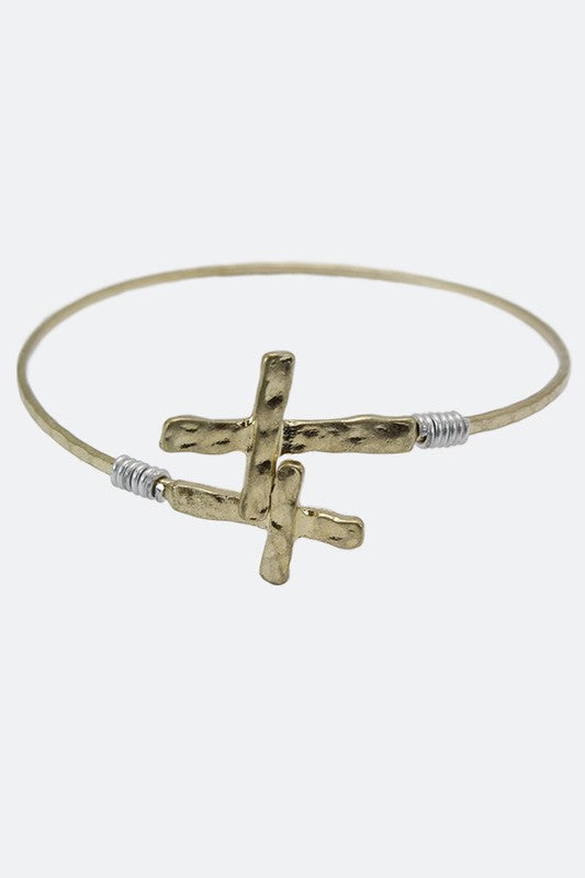 "Blessed" Written Key Shape Metal Bangle Bracelet