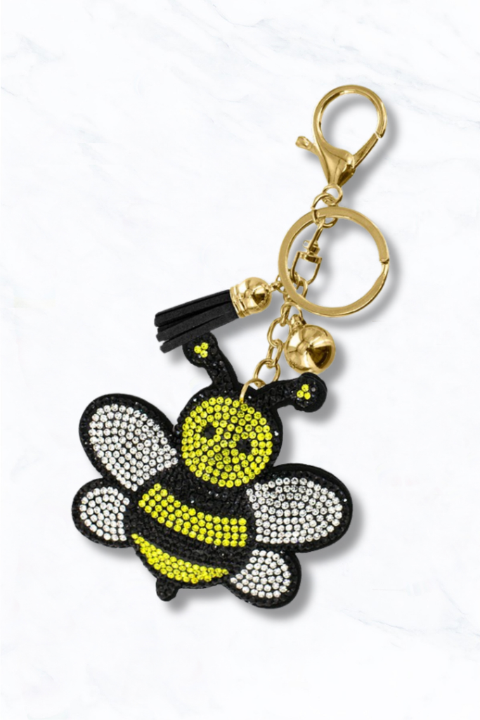 Rhinestone Bee Cushion Keychain with Tassel, Ornament