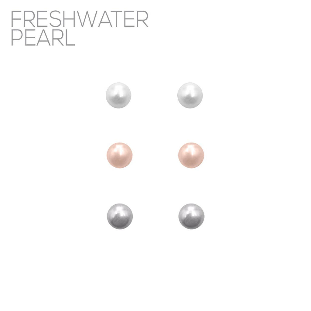 3Pair 1set 6MM Freshwater Pearl Post Earrings