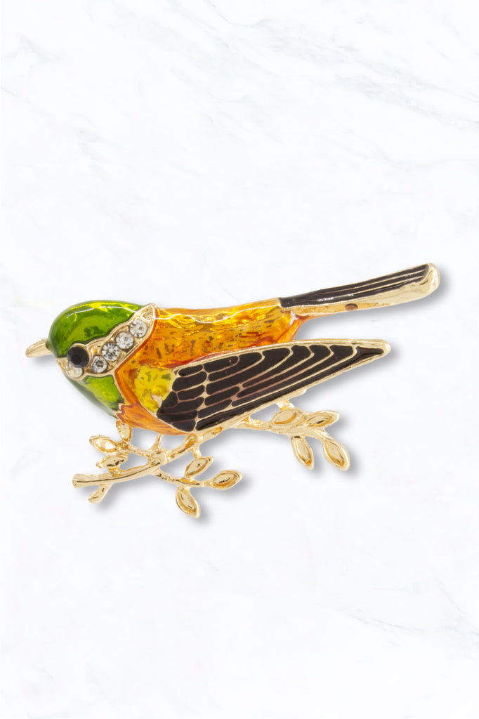 Enamel Bird Brooch Pin with Rhinestone Accents