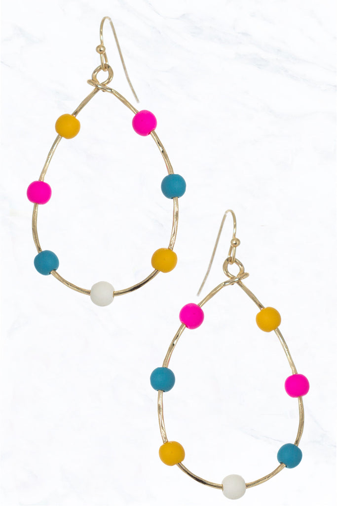 Open Teardrop Colorful Bead Earrings -