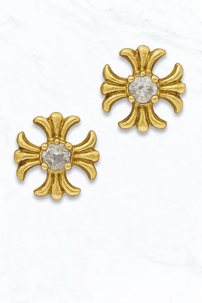 Gold Cross Stud Earrings