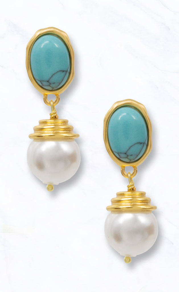 Turquoise Swirl Clay and Gold Teardrop Earrings