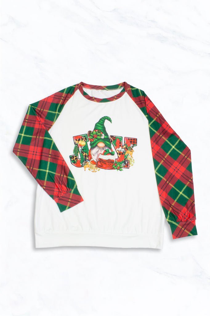 Christmas JOY Gnome Plaid Raglan Tee