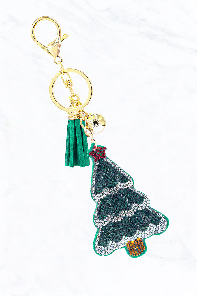 Snowy Glitter Christmas Tree Keychain