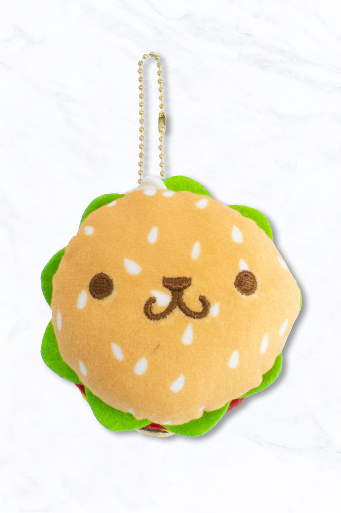 A charming little plush burger with a calm, cozy expression. Made of soft plush with cute lettuce details, this keychain brings a smile anywhere you go.